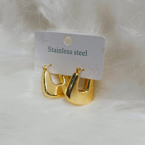Matte Gold Abstract Chunky Hoop Earrings - Modern Geometric C-Shape Studs Matte Gold Abstract Chunky Hoop Earrings - Modern Geometric C-Shape Studs
